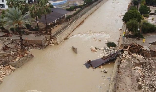 Mersin'in Mezitli ilçesi Tece Mahallesi'ndeki dün yaşanan sel nedeniyle derede bulunan yaya köprüsü yıkılırken, su basan alanlar dron ile görüntülendi. Bölgede ekiplerin temizlik ve su tahliye çalışmalarını aralıksız sürdürdüğü bildirildi.