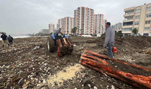 Mersin'de dün etkili olan kuvvetli yağışların ardından kent genelinde sel ve taşkınlar meydana geldi. Bazı bölgelerde dere yataklarının taşmasıyla oluşan su birikintileri ve çamur, günlük yaşamı olumsuz etkilerken, yağışların durmasının ardından su tahliyesi ve temizlik çalışmaları hızla başlatıldı. Sel ve taşkınların ardından sahaya çıkan ekipler, suyun tahliyesinin yanı sıra çamur, atık ve sürüklenen malzemelerin temizlenmesi için geniş çaplı çalışma yürüttü. Mezitli ilçesinde ise Tece Mahallesi'nden geçen derede bulunan yaya köprüsü selin etkisiyle yıkıldı. Sel sonrası yıkılan köprü ile su basan siteler dronla görüntülendi. Bölgede ekipler temizlik çalışmalarını sürdürürken, bazı vatandaşların akıntıyla sahile sürüklenen odunları topladığı görüldü. Bölgede sel sırasında bazı araçların suya kapıldığı noktada da temizlik ve güvenlik çalışmalarının devam ediyor.