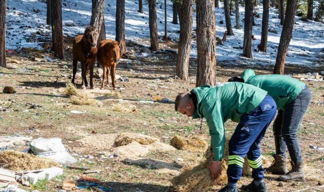 Mersin Büyükşehir Belediyesi ekipleri, Tarsus ilçesine bağlı Karboğazı mevkiinde yaşayan yılkı atlarını çayır otu ve arpa ile besledi. Ekipler, bölgede bulunan yabani köpekler için de mama bıraktı.