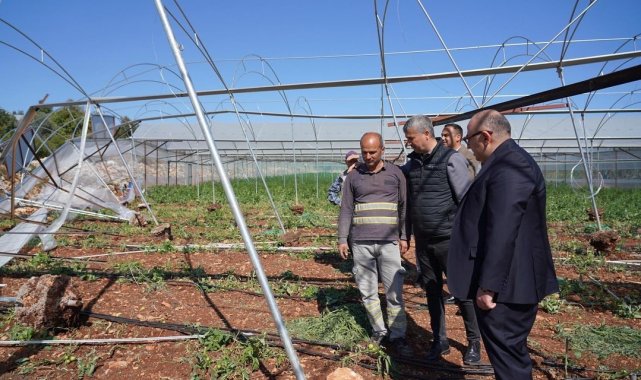 Zarar gören alanları gezen Belediye Başkanı Mustafa Kara," Kentimizde meydana gelen fırtına dolayısıyla Üçtepe Mahallemizde yıkılan seralarda incelemelerde bulunduk, çiftçilerimize geçmiş olsun dileklerimizi ilettik" dedi.