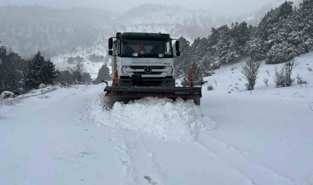 Mersin'in Mut ilçesinde yüksek kesimlerinde etkili olan kar yağışıyla birlikte harekete geçen Büyükşehir Belediyesi ekipleri, yolları açtı.