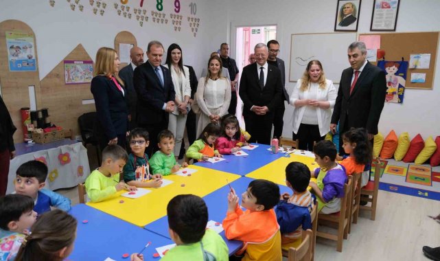 Heyet sonrasında Mersin OSB içerisinde bulunan Özel Esra Şemsi Gündüz Bakımevinde incelemelerde bulundu ve eğitim gören çocuklara hediye takdim etti.
