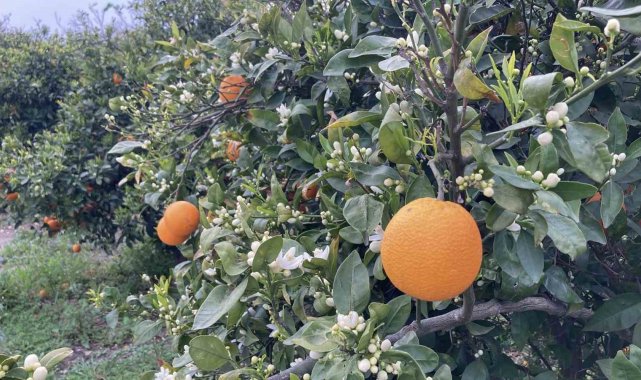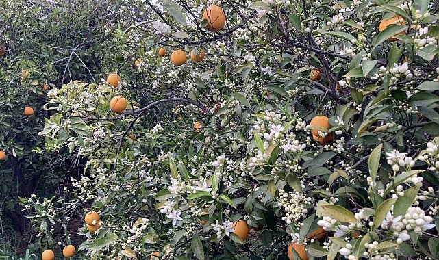 Türkiye'de narenciye üretiminde ikinci sırada yer alan Mersin'de sezonda yaklaşık 1 milyon 660 ton civarında ürün elde ediliyor. Her yıl ekim ve kasım aylarında limondan, portakala kadar bir çok narenciyede başlayan hasat ise mart ayı sonunda büyük ölçüde tamamlanıyor. Bir çok narenciye ürününde olduğu gibi portakalda da hasat sonu yaklaştı. Geç meyve verenlerin son hasatlarının yapıldığı bugünlerde ağaçlarda yeniden çiçekler açmaya başladı. Meyvesi dalında olan ağaçların da çiçekler açmasıyla çevreye güzel kokular yayılmaya başladı. Arıların polen topladığı çiçekler, görsel güzellik de oluşturdu.
