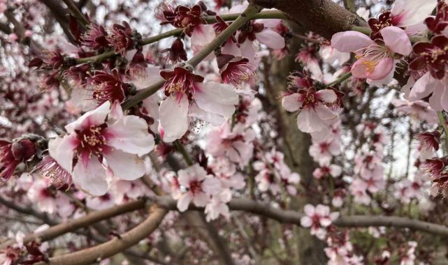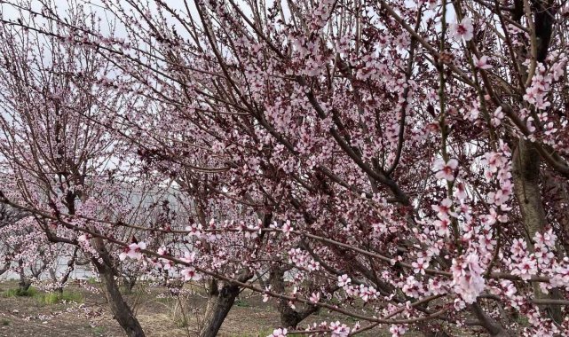 Öte yandan, kayısı ağaçlarının çiçekleri de ayrı bir güzellik oluşturdu.
