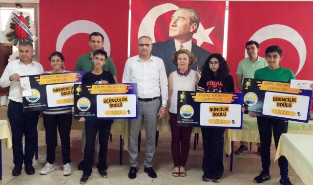 Mersin'in Erdemli İlçesinde düzenlenen 29 okuldan 113 öğrencinin katıldığı matematik olimpiyatları yarışmasında ödüller sahiplerini buldu. Öğrencilere, danışman öğretmenlere ve okullara derecelerine göre 2 bin lira ile 500 TL arasında çeşitli ödüller dağıtıldı.