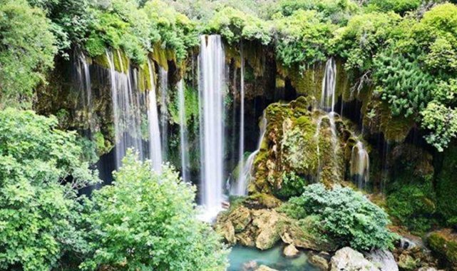 Mersin'in Mut ilçesindeki Yerköprü Şelalesi, zengin bitki örtüsü, kulağ...