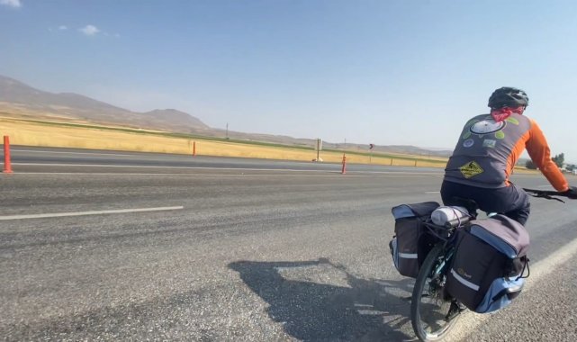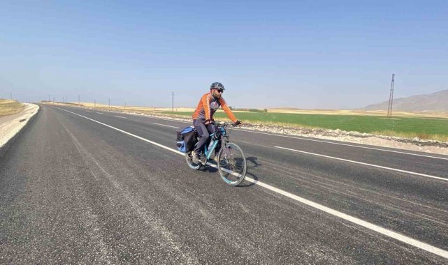 Mersinli bisikletçi Van Gölü için pedal çevirdi
