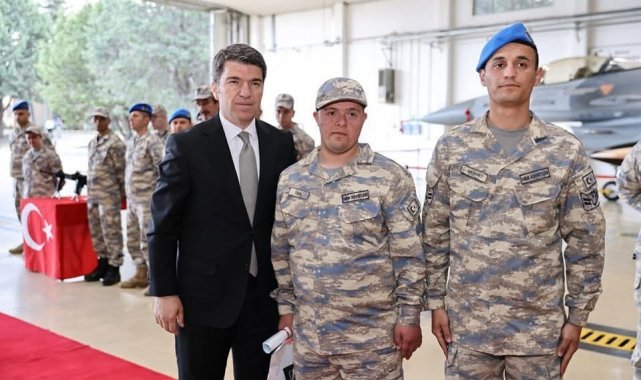 Saygı duruşunda bulunulan ve İstiklal Marşı okunan törende engelliler, ellerini Türk bayrağı ve silahların üzerine koyup yemin ederek terhis belgelerini aldı. Engellilerin savaş uçağının önünde selam verdikleri anlar ise izleyenlere gurur yaşattı.