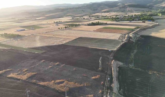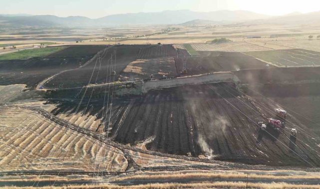 Merzifon'da 80 dönüm tarım arazisi yandı, yanan alan havadan görüntülendi