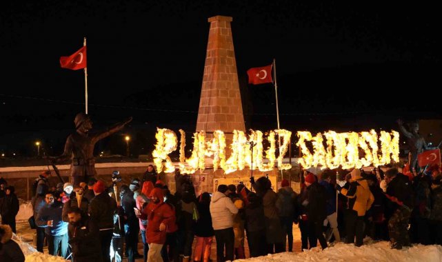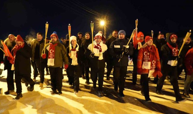 Kars'ta 111 yıl önce Sarıkamış Harekatı'nda şehit olan askerler için binlerce kişi soğuk havada meşale yakarak şehitlik anıtına yürüdü.