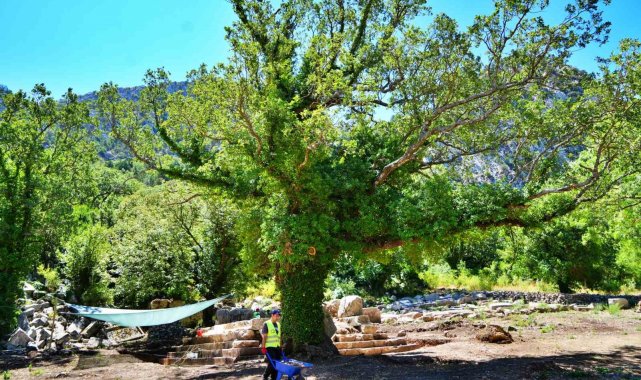 Antalya Bilim Üniversitesi ve Kültür ve Turizm Bakanlığı'nın "Geleceğe Miras Projesi" kapsamında yürütülen Termessos kazılarında doğanın antik kalıntılarla kurduğu etkileyici ilişki gözler önüne serildi. Lahit parçalarının arasında büyüyen dev bir meşe ağacı, birkaç yüz kiloluk bir taş bloğu adeta gövdesiyle kaldırmış durumda. Kazı başkanı Antalya Bilim Üniversitesi Öğretim Üyesi Doç. Dr. Mustafa Koçak, "Termessos hem bir antik kent hem de bir milli park. Burada tarih ve doğa kelimenin tam anlamıyla iç içe geçmiş durumda. Bunun en güzel örneklerinden birini bu ağaçta görüyoruz" dedi.