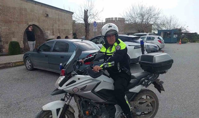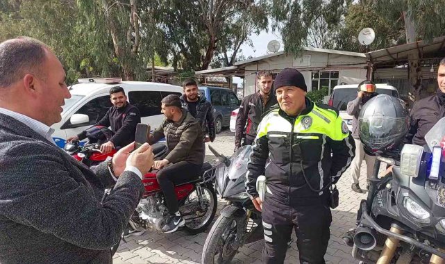 Mesleğinde 32 yılı geride bırakarak emekli olan trafik polisinin son görevinde motosikletlilerden sürpriz