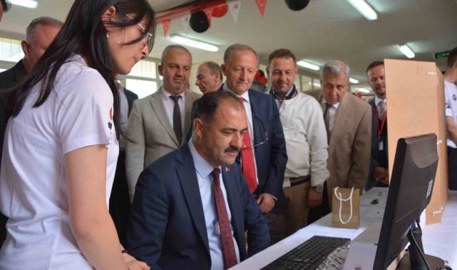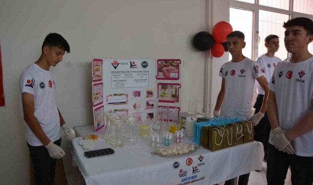 Manisa'nın Demirci ilçesinde meslek lisesi öğrencileri okulda bilim fuarı düzenledi.