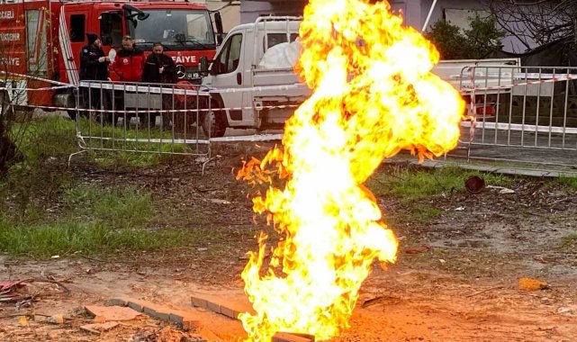 İlginç olay, dün saat 14.00 sıralarında Dumlupınar Mahallesi Bedir Sokak'ta metro inşaatının sondaj çalışması sırasında meydana geldi. Yaklaşık 47 metre derinlikte sondaj çalışması yapıldığı sırada yüzeye çıkan metan gazı alevlendi. İşçilerin 112 Acil Çağrı Merkezi'ne ihbarda bulunması üzerine bölgeye polis, sağlık, itfaiye ve AFAD ekipleri sevk edildi. Şerit çeken ve demir bariyerle yangının çevresine girişleri kapatan ekipler, bölgede güvenlik önlemi aldı.