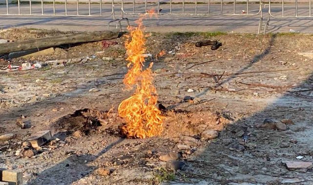 Kocaeli'nin Kartepe ilçesinde zemin etüdü sondaj çalışması sırasında çıkan metan gazı, 9 gündür yanmaya devam ediyor.