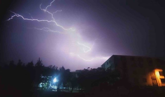Meteoroloji 13. Bölge Müdürlüğünün yaptığı uyarı sonrası, bu gece saat 01.00 sıralarında yağmur öncesi gök yüzünde ardı ardına çakan şimşekler Bingöl'de adeta geceyi gündüze çevirdi.