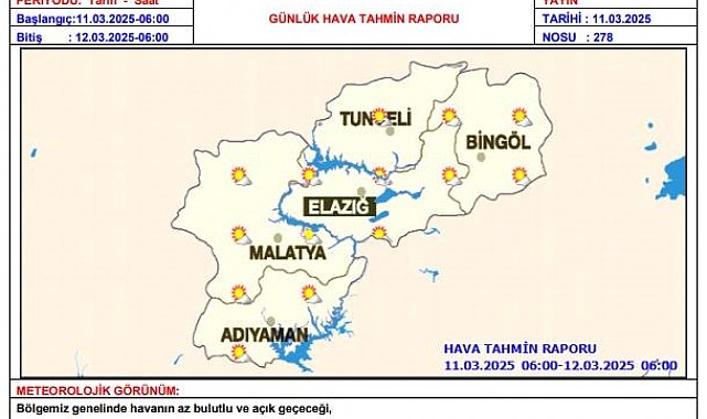 Meteoroloji 13. Bölge Müdürlüğü; Elazığ, Malatya, Bingöl, Tunceli ve Adıyaman'ı çığ tehlikesi ve kar erimesine karşı uyardı.