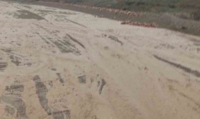 Hayatı olumsuz etkileyen sağanak yağışın ardından derelerin coştuğu anlar cep telefonu kamerasına yansıdı