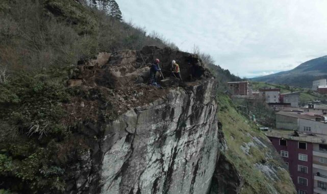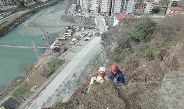 Artvin'in Borçka ilçesine bağlı Aksu Mahallesi'nde yıllardır yol güvenliğini tehdit eden dev kaya kütleleri, profesyonel ekipler tarafından kontrollü bir çalışma ile düşürüldü. AFAD koordinesinde yürütülen çalışmalarda endüstriyel dağcılar metrelerce yüksekliğindeki yamaçlara ip sistemleriyle tırmanarak tehlike oluşturan kayalara ulaştı.
