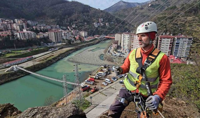 Yamaçlarda metrelerce yükseklikte çalışan endüstriyel dağcılar, zorlu şartlara rağmen yaptıkları müdahalelerle hem yol güvenliğini sağlıyor hem de olası kazaların önüne geçiyor.