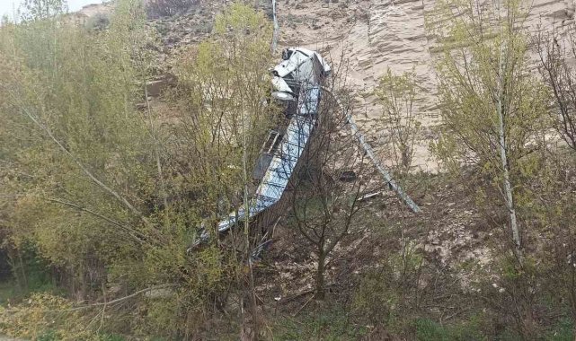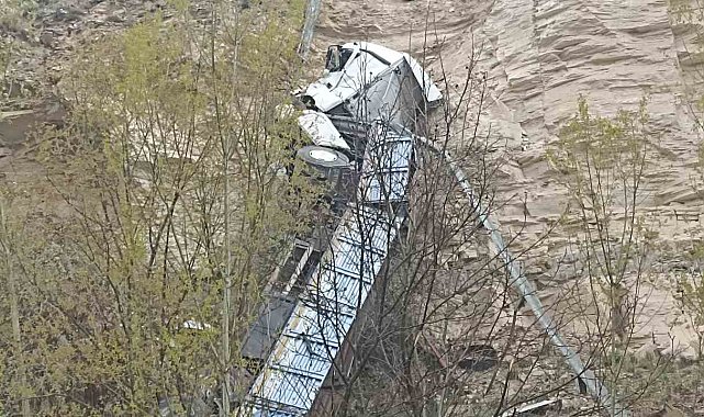 Sivas'ta metrelerce yükseklikten uçuruma düşen tırın sürücüsü kazayı hafif sıyrıklarla atlattı.