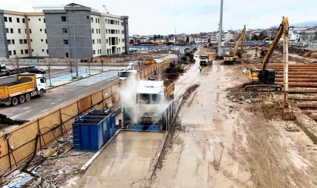 Kocaeli'de yapımı devam eden Körfezray Metro Projesi kapsamında, inşaat alanından çıkan araçların ana yollara çamur ve toz taşımasını engellemek amacıyla özel yıkama üniteleri kuruldu.
