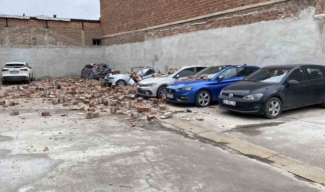 Eskişehir'de fırtına sebebiyle bir metruk binanın çatı duvarı açık otoparka devrilirken, 6 araçta maddi hasar oluştu. Çevre sakinleri, duvarın devrilmesi ile birlikte duyulan gürültüyü patlama sesi zannetti.
