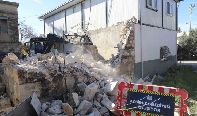 Yapı Kontrol Müdürlüğünün tespiti ve Akdeniz Belediye Encümeninin kararı doğrultusunda, İstiklal Caddesi üzerinde bulunan ve sahipleri tarafından terk edildiği için harabeye dönen 2 katlı yapı için yasal süreç tamamlandı. Sürecin ardından yıkım çalışmalarına başlandı.