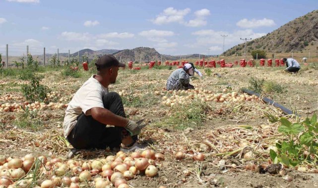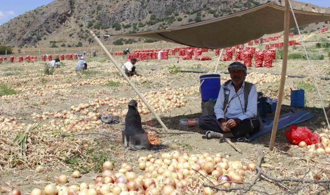 Her yıl yaklaşık 4 bin dekarlık alanda soğan üretiminin yapıldığı bölgede, sabahın ilk ışıklarıyla birlikte tarlaya giren işçiler, gün boyu yoğun mesai harcıyor. 35 dereceyi bulan sıcaklıklarda çalışan işçiler, özenle söktükleri soğanları çuvallara doldurarak satışa hazır hale getiriyor.