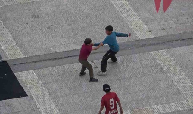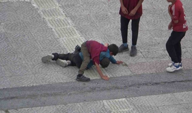 Çöp toplayan yabancı uyruklu çocuklar ise bilinmeyen bir nedenle tekme ve yumruklarla birbirlerine girdi. Yaklaşık 5 dakika boyunca birbirilerini yerlerde sürükleyen, yumruk atan ve tehlikeli hareketler yapan çocukları buradan geçen bir kadın ayırdı.