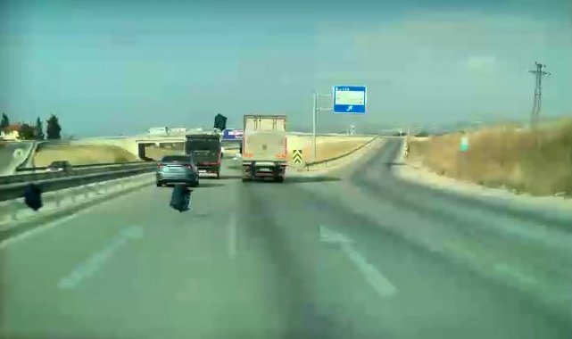 Bursa'dan İzmir istikametine doğru seyreden kamyondan yerlere saçılan sebze ve meyve kasaları, trafiği savaş alanına çevirecekti. Yolun boş olması ve sürücülerin dikkati sayesinde büyük bir faciadan dönüldü.