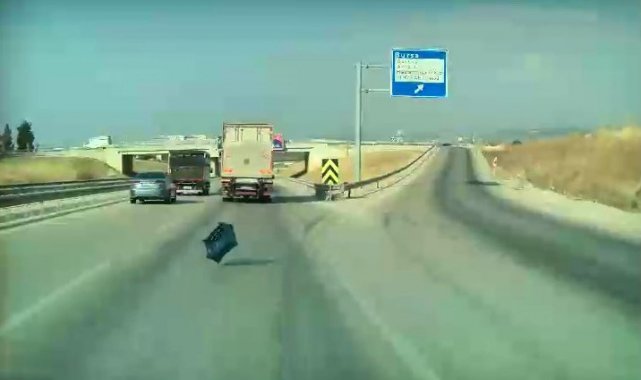 Olay, Bursa-İzmir yolu üzeri Akçalar mevkiinde meydana geldi. Edinilen bilgiye göre, kamyon sürücüsü kasasına yüklediği boş sebze ve meyve kasalarıyla tarlaya doğru yola çıktı. Ana yolda boş kasalar sebebiyle hızlandıkça hızlanan sürücü, sol şeritten ilerlemeye başladı ancak, bağlı olmayan plastik kasalar bir bir uçmaya başladı.