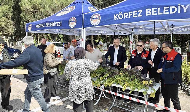 Körfez Belediyesi, Ramazan Bayramı arifesinde mezarlıkları ziyaret eden vatandaşlara fidan ve çiçek dağıttı.