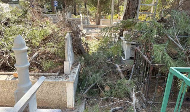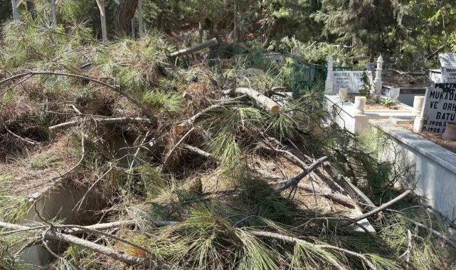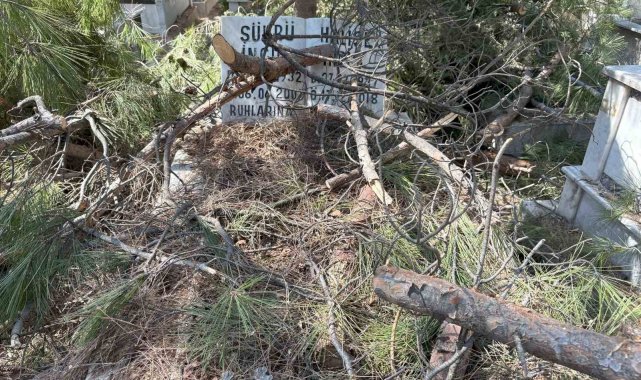 Mezarlıkta budanan ağaçlar kabirlere zarar verdi