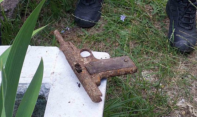 Samsun'da mezarlık yapımı sırasında toprağa gömülü tabanca ele geçirildi.