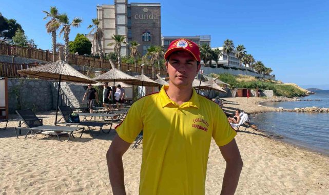 Balıkesir'in Ayvalık ilçesindeki Cunda Turizm Mesleki ve Teknik Anadolu Lisesinden geçen yıl mezun olan üniversite öğrencisi Taha Beyazdere (18) , lisenin uygulama otelinin plajında cankurtaran olarak görev yapıyor.