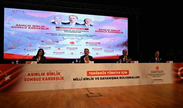 MHP Genel Başkanı Devlet Bahçeli'nin talimatıyla "Asırlık Birlik, Sonsuz Kardeşlik" temasıyla başlatılan 'Terörsüz Türkiye İçin Milli Birlik ve Dayanışma Buluşmaları' sürüyor. Bu çerçevede, ilk olarak 9 Ağustos 2025 tarihinde Erzurum'da düzenlenen buluşmanın 5'incisi bugün Eskişehir ev sahipliğinde gerçekleştirildi. Saat 13.00'da başlayan programa Afyonkarahisar, Balıkesir, Bilecik, Bolu, Bursa, Konya, Kütahya ve Yalova'dan gelen parti mensupları katılım gösterdi.