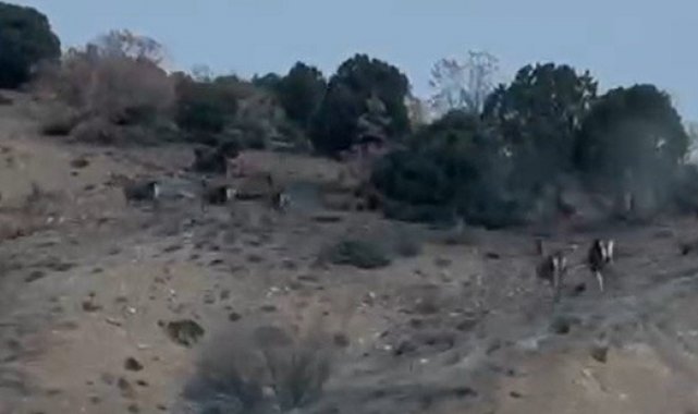 Eskişehir'in Mihalıççık ilçesinde karayolunda aracı ile ilerleyen bir sürücü, yolun karşısına geçen geyik sürüsünü görünce otomobilini durdurdu. Sürücü, cep telefonu ile geyiklerin kaçışını kaydetti. Karayolundan tepelere doğru kaçışan toplam 10 geyiğin koşuşturması güzel görüntüler oluşturdu.
