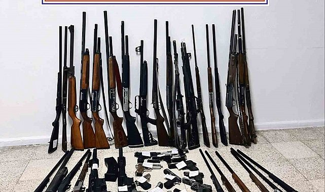 Milas'ta çok sayıda tüfek ve kurusıkı tabanca ele geçirildi