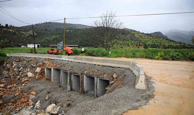 Milas'ta üç mahalleyi birbirine bağlayan ve yoğun yağış nedeniyle hasar gören köprü Muğla Büyükşehir Belediyesi ekiplerinin 26 saatlik çalışmasıyla yeniden ulaşıma açıldı.