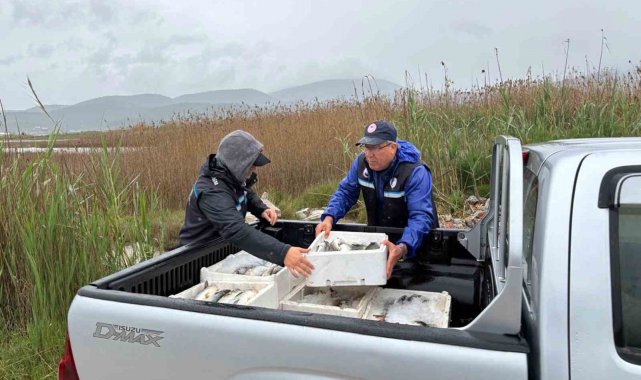Muğla'nın Milas ilçesinde bulunan Güllük Lagünü'nde Muğla Tarım ve Orman İl Müdürlüğü ekipleri tarafından gerçekleştirilen denetimlerde, yasadışı yollarla avlanmış 80 kilogram kefal balığı ele geçirildi.