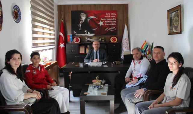 25-26 Nisan 2026 tarihlerinde Polonya Korzenna'da düzenlenecek Budokaido-Kyokushin Dünya Şampiyonası'na katılacak olan İzmir'li millî sporcu Görkem Uludoğan, Polonya yolculuğu öncesi antrenörü ve ailesi ile birlikte Ödemiş İlçe Millî Eğitim Müdürü Sunullah Desticioğlu'nu ziyaret etti.