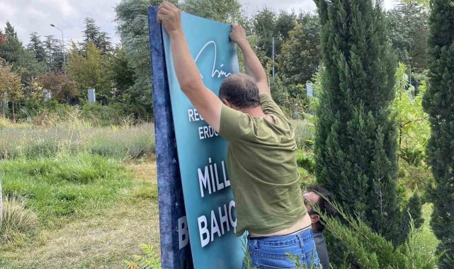 Eskişehir'de Millet Bahçesi'nin girişlerinde Recep Tayyip Erdoğan'ın isminin kazındığı tabelalar Vali Hüseyin Aksoy'un talimatıyla hızlıca yenilendi.