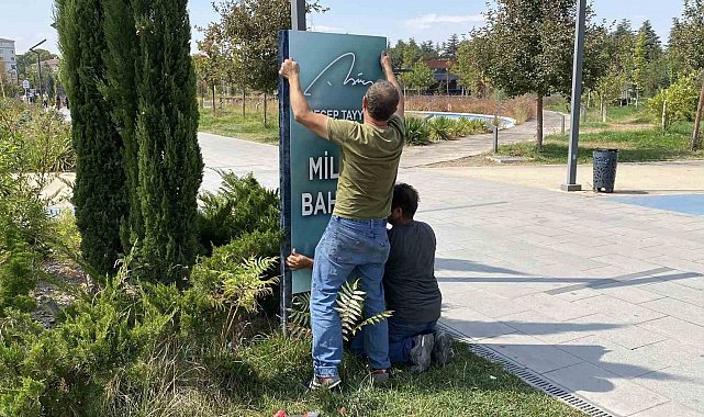 Vişnelik mahallesinde bulunan Recep Tayyip Erdoğan Millet Bahçesi'nde geçtiğimiz günlerde tabelalara saygısızca bir saldırı gerçekleştirildi. Kimliği bilinmeyen şahıs veya şahıslar, Cumhurbaşkanı Erdoğan'ın ismini tabelalardan kazıyıp silmeye çalıştı. Bu konu hakkında bilgi sahibi olan Eskişehir Valisi Hüseyin Aksoy, onarım çalışmaları yapılması için ilgili kurum yetkililerine talimat verdi. Vali Aksoy'un emriyle, Millet Bahçesi'ndeki o tabelalar bugün onarıldı.