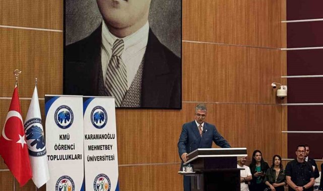 "Geçmişten Bugüne Türklerin Kullandığı Alfabeler ve Ortak Türk Alfabesi" konferansı ve Kızıl Elma Türkçe Ödül Törenine katılan Aydın, Türkçe'nin millet olma ve milleti yaşatma üzerine öneminden bahsederken Karaman'ın ve Karamanoğlu Mehmet Bey'in ana dilimiz Türkçe için önemli bir mihenk taşı olduğunu belirtti.