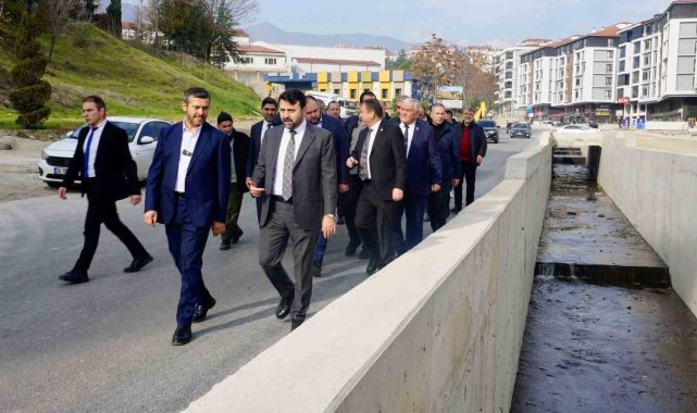 2 bin metrelik yeni bulvar düzenlemesi, dere ıslahı ve çevresel iyileştirmeler, asfalt serimi, kaldırım ve yaya yolu yenilemeleri, peyzaj uygulamaları ve modern aydınlatma sistemlerinin yapıldığı alanı gezen heyete Belediye Başkanı Özkan Çetinkaya detaylı bilgi aktardı.