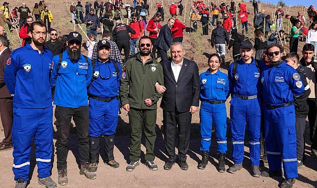 Konuşmaların ardından Özarslan ve beraberindekiler, 300 adet çam fidanını toprakla buluşturdu.