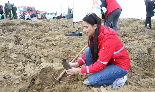 Konuşmaların ardından protokol üyeleri, öğrenciler ve vatandaşlar, fidanları toprakla buluşturarak can suyu verdi.