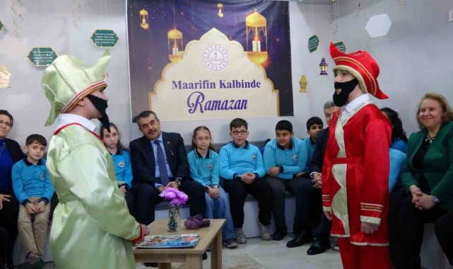 Milli Eğitim Bakanı Yusuf Tekin, çeşitli ziyaretler kapsamında bulunduğu Artvin'de öğrencilerle bir araya geldi. Programı çerçevesinde Artvin Kitap Kafe'yi ziyaret eden Tekin'e ilkokul öğrencileri tarafından Ramazan ayına özel hazırlanan Hacivat-Karagöz gösterisi sunuldu. Öğrencilerin akordeon eşliğinde seslendirdiği yöresel müzik dinletisi de beğeni toplarken, Tekin performanslarından dolayı öğrencileri tebrik etti.