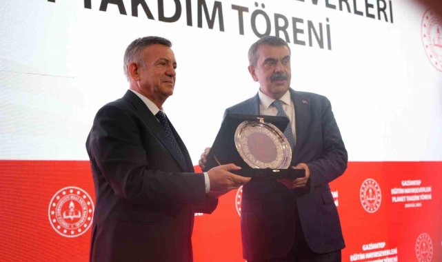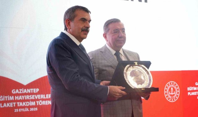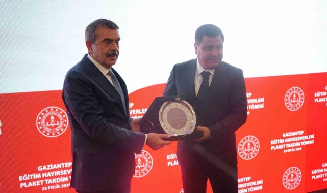 Milli Eğitim Bakanı Yusuf Tekin, Gaziantep'te eğitime katkı sağlayan hayırseverle plaket takdim töreninde bir araya geldi.